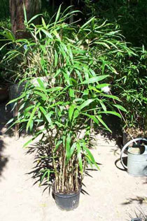 fastuosa, dt.: Säulenbambus Wuchshöhe: 2-4 m Halme: straff aufrecht, seidige Schutzhüllen Blätter: mittelgross, dunkelgrün Verwendung: Sichtschutzpflanze, Kübel Winterhärte: -22° C  |